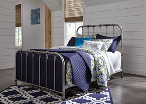 Country cottage. Farmhouse chic. Vintage industrial. However you see it, you’re sure to be instantly charmed by this retro-inspired queen metal bed. Finished in an aged pewter-tone, its steel frame with moulded "fittings" brilliantly mimics wrought-iron beds from yesteryear. Let yourself drift away to a simpler time and place. Mattress and foundation/box spring available, sold separately.